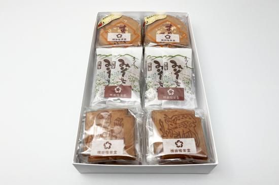 (内容)みそせんべい(4枚入)×2個 豆板せんべい(4枚入)×2個 天平の瓦せんべい(4枚入)×2個